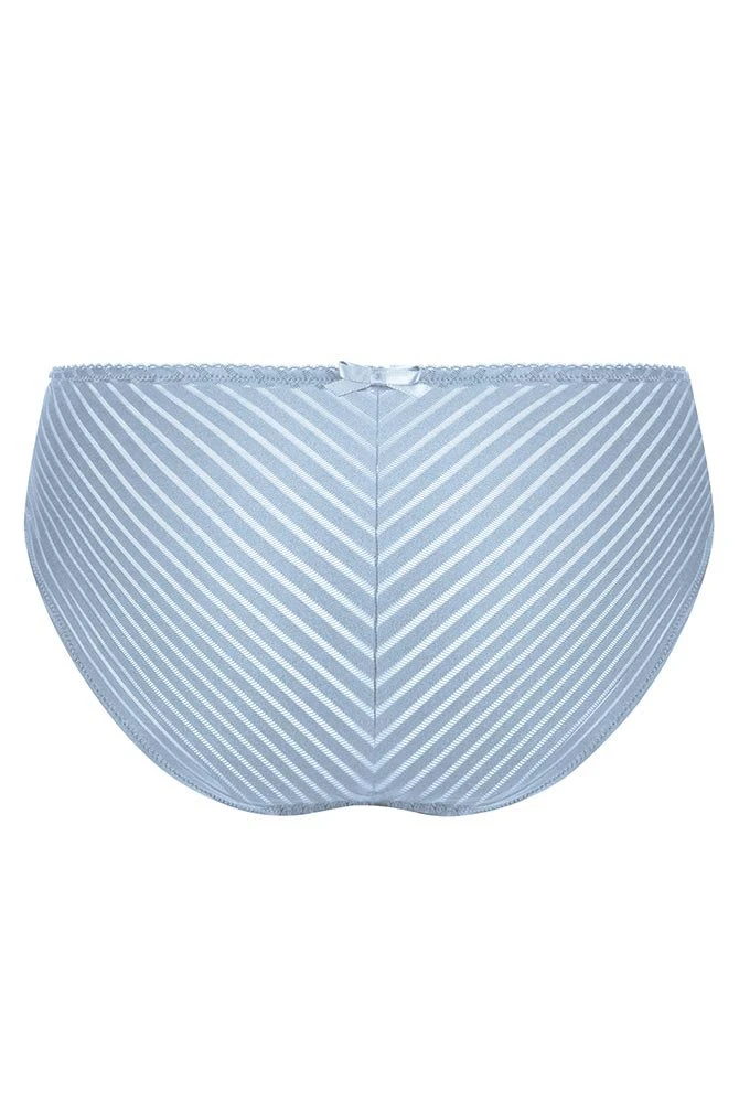 Eine besonders reizvolle Ergänzung zu den Prothesen BHs der Serie Karolina von Amoena ist Slip Karolina. Im oberen Teil der Panty wird das Fächermotiv aus zarter Spitze, welches auch bei den BHs der Serie Karolina im Mittelpunkt der Gestaltung steht, wieder aufgegriffen. Die Rückseite und das mittlere Vorderteil des Slips sind in Streifenoptik gestaltet. An den Seiten des Vorderteils kommt leichtes Netzmaterial zum Einsatz. In der Mitte vorn und hinten wird der Bund durch eine kleine Schleife geschmückt, die vorn zusätzlich mit einem hübschen goldenen Anhänger verziert ist. Der Bund ist mittelhoch und der Beinausschnitt moderat. Dieser leichte, bequeme und weiche Slip von Amoena unterstreicht raffiniert Ihre Figur.