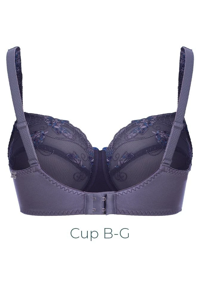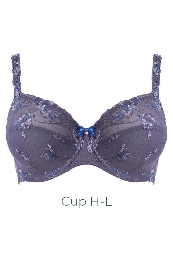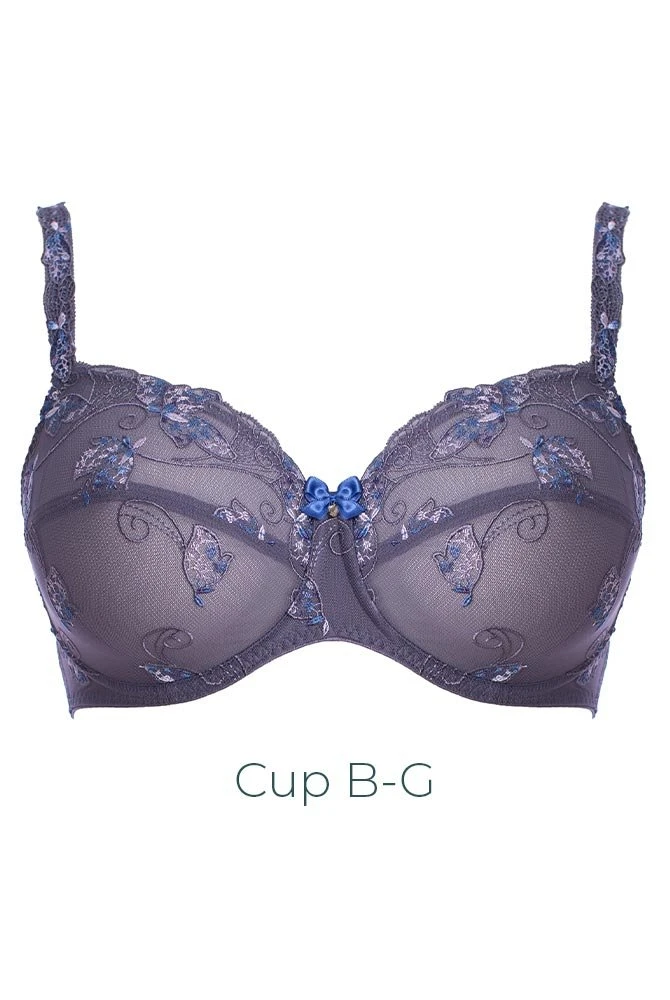 Elegant und außergewöhnlich wirkt Bügel-BH Carla mit verführerisch transparenten Cups, edel bestickt, mit feinster Schweizer Stickerei. Zarte Blüten auf weichem, transparent schimmerndem Tüll sind ein Highlight und geben dem BH-Modell eine besonders feminine Ausstrahlung. Die Cups sind mit stützendem Bügel und einer sanft formgebenden Quernaht verarbeitet.