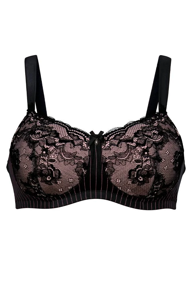 Sinnlich und voller Lebensfreude, verkörpert der Prothesen-BH Antonia den Geist des Dolce Vita. Außen kontrastiert verführerische Spitze mit edlen Nadelstreifen während innen ein weicher, kaschierender Schaum für eine feminine Silhouette sorgt. Ein echter Blickfang und superbequem sind die ummantelten und verstellbaren Träger, sowie die zauberhafte Schleife mit Anhänger im Dekolleté. Qualitätsmarke Anita Care überzeugt mit Design der Extraklasse sowie wohltuende Funktionalität. Die beidseits eingearbeiteten Prothesentaschen bestehen aus angenehmem Baumwoll-Jersey und liegen weich auf der Haut. Die Cups sind aus hochwertiger elastischer Spitze gearbeitet und mit weichem Schaum blickdicht gefüttert. Das verhindert Transparenz. Das Material im Rücken besteht aus kräftigem Powertüll und hält trotz seiner zarten Optik, was es verspricht.