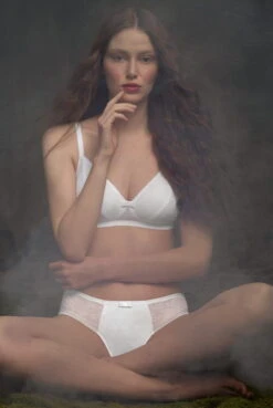 Klare, fein geschwungene Linien rahmen ein tiefes Dekolleté und setzen es akzentuiert in Szene. Die BH-Träger schmückt grazil ein zarter Spitzenstreifen. Mit seiner atmungsaktiven, vorgeformten Spacer-Schale ohne Bügel ist BH Selma kaum spürbar und modelliert ein besonders schön tief geschnittenes Dekolleté bis in Cup Größe G.